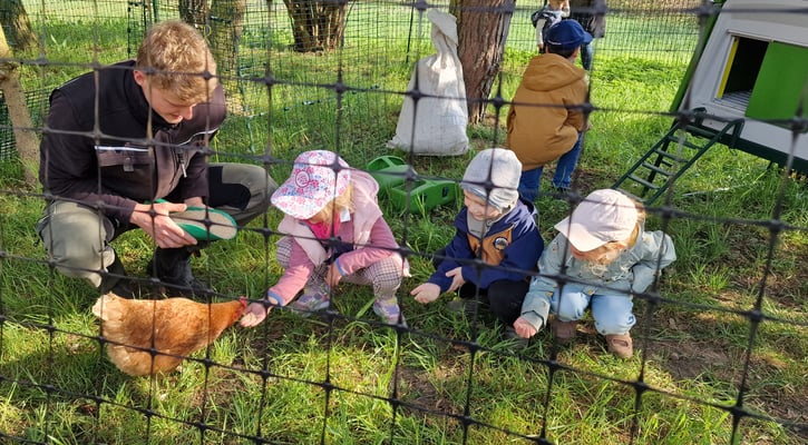 Nun übernimmt jede Woche ein Gruppenverband aus dem Elementarbereich die Pflege und Fütterung der Hühner und natürlich auch das Eier einsammeln. Unsere 4 Hühner legen jedes täglich ein Ei!